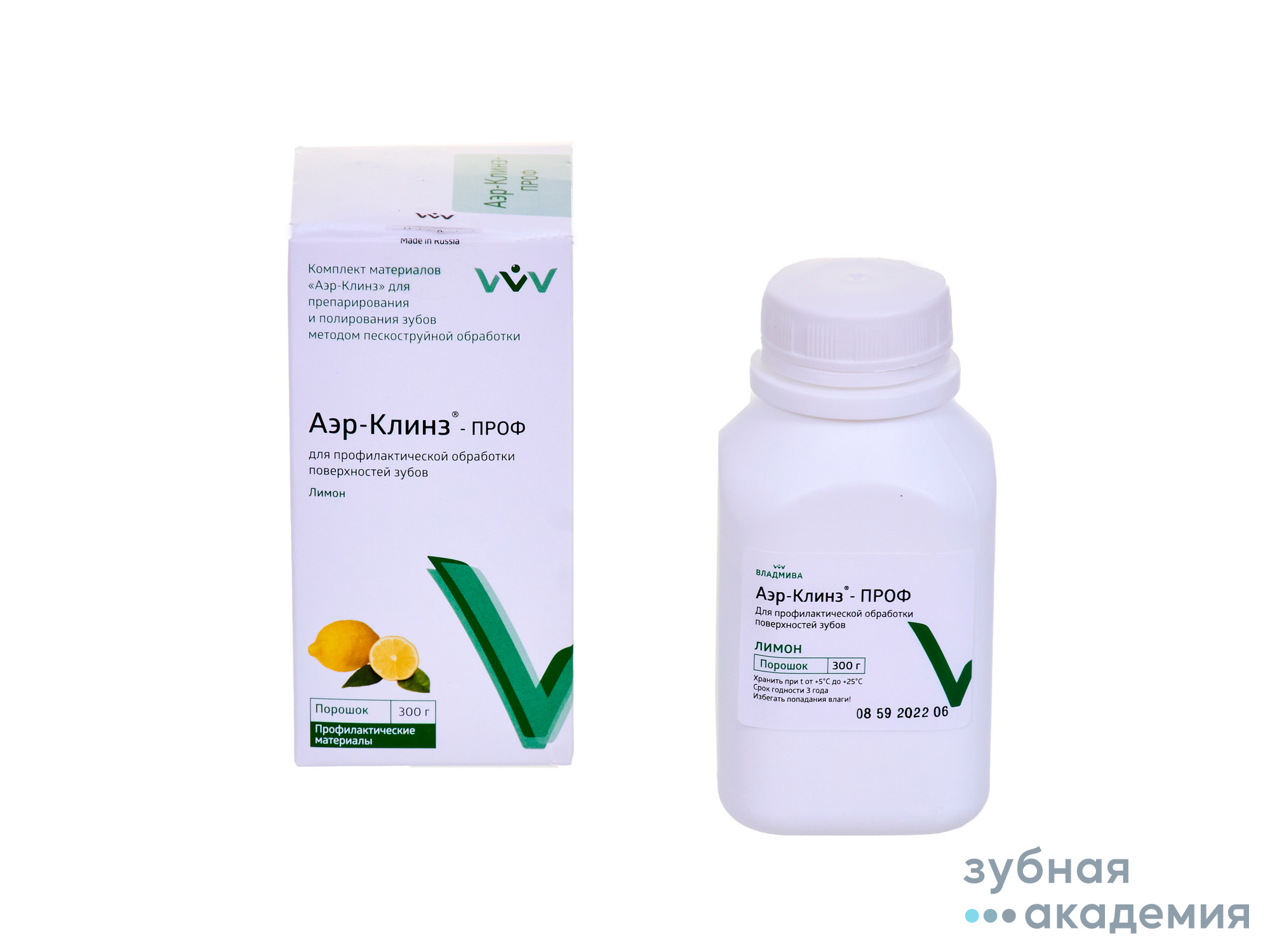 - СОСТАВ И ОСНОВНЫЕ СВОЙСТВА «Аэр-Клинз-ПРОФ» в качестве основного компонента содержит гидрокарбонат натрия с размером частиц, позволяющим провести очистку при щадящем воздействии на твердые ткани зуба. При случайном попадании очищающей струи на десну лидокаина гидрохлорид (0.5%), входящий в состав порошка, обеспечивает безболезненность мягких тканей. Порошок имеет приятный освежающий запах и вкус. НАЗНАЧЕНИЕ Аэр-Клинз-ПРОФ» (на основе соды) предназначен для: • удаления налета и мягких зубных отложений; • удаления пигментаций и отбеливания зубов; • очистки фиссур перед герметизацией. Вкус: Лимон.