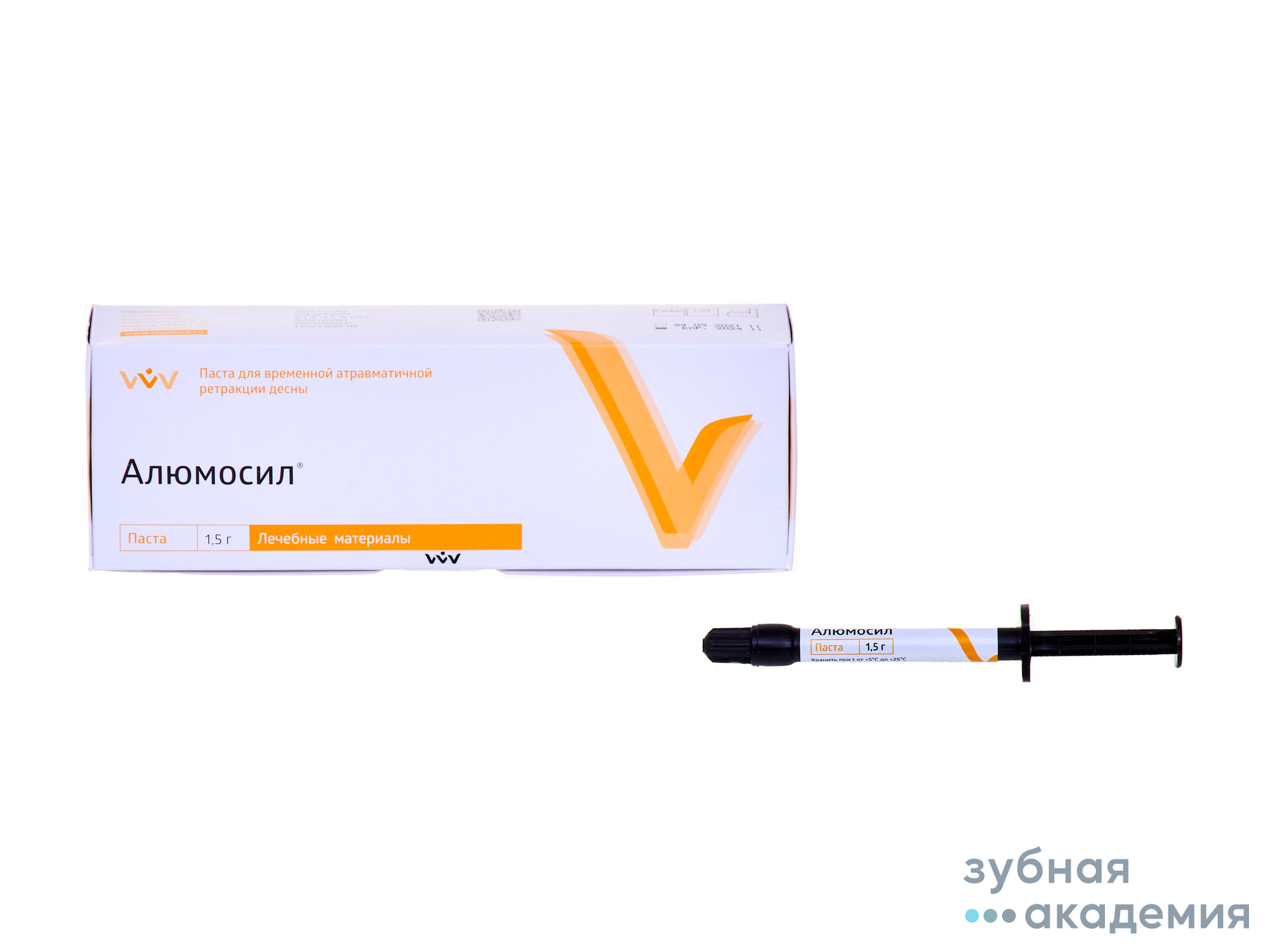 Материал «Алюмосил» представляет собой готовую к применению пасту, обладающую вяжущими и гемостатическими свойствами. Паста «Алюмосил» содержит: алюминий хлористый, определяющий вяжущее, гемостатическое и ретракционное свойства материала; инертный наполнитель, а также вкусовые и технологические добавки.
