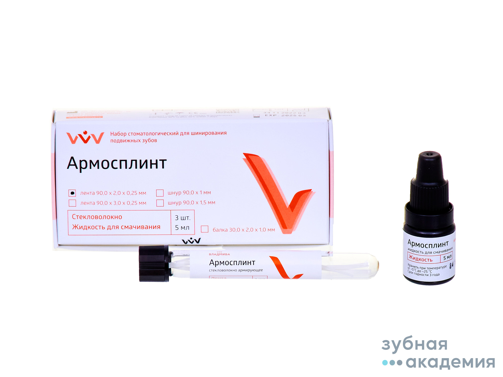 В набор «Армосплинт» входят: стекловолокно, жидкость для смачивания стекловолокна, текучий композит, адгезивная система.