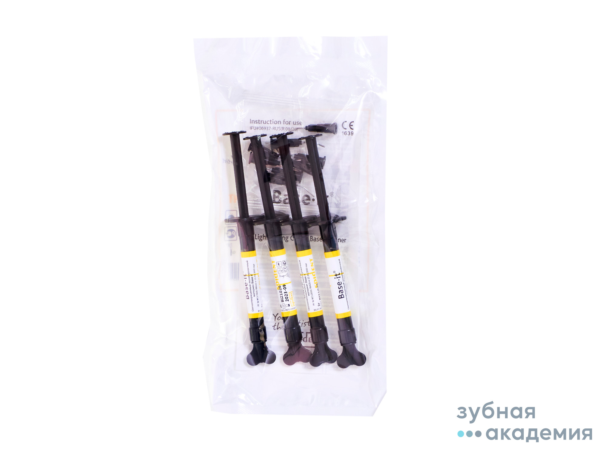 - ОПИСАНИЕ: BASE IT (4 ШПР.Х 2Г)-СВЕТООТВЕРЖДАЕМАЯ ПРОКЛАДКА, SPIDENT Base it - Светоотверждаемый прокладочный материал. ПОКАЗАНИЯ К ПРИМЕНЕНИЮ Лечебная и изолирующая прокладка при глубоком кариесе. Лайнерная прокладка при среднем кариесе. ХАРАКТЕРИСТИКИ МАТЕРИАЛА Содержит гидроксиапатит кальция Высокая степень химической адгезии к ткани зуба за счет содержания биосовместимых мономеров Обладает кариостатическим действием Стимулирует образование вторичного дентина за счет выделения ионов кальция и фосфата Низкая степень полимеризационной усадки 1,5% Рентгеноконтрастен Имеет щелочную среду