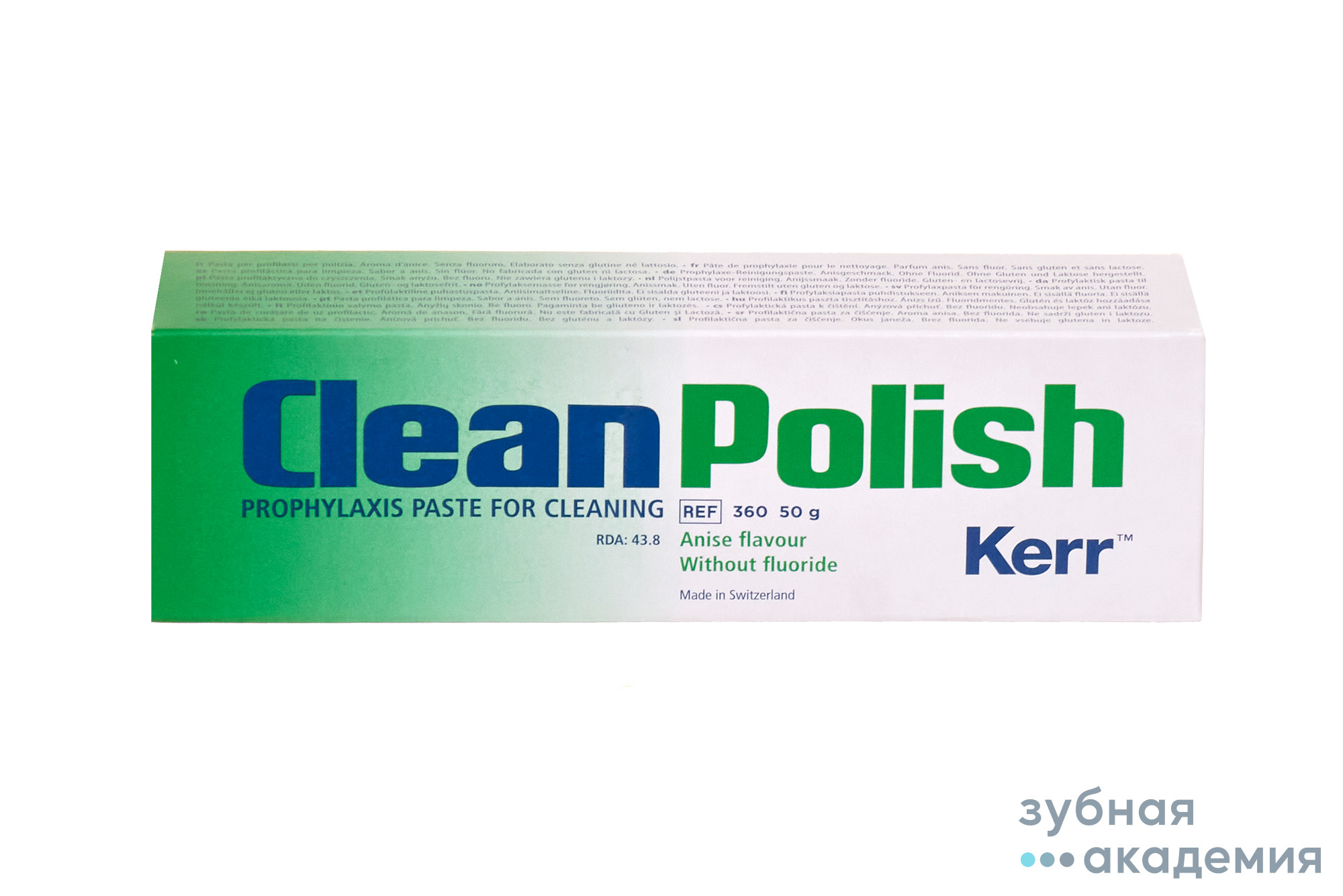 - Паста полировочная стоматологическая: на основе минералов из породы риолитов для чистки и полировки зубов, а также для предварительной полировки пломб из золота, амальгамы и композитов. Без фтора и анисовой отдушки. Цвет зеленый. Упаковка 50 г пасты в тюбике. CleanPolish: паста, которая быстро и эффективно очищает, как естественные ткани зубов, так и реставрации из композитов и металлов. На основе пемзы (более абразивная, нежели Cleanic).