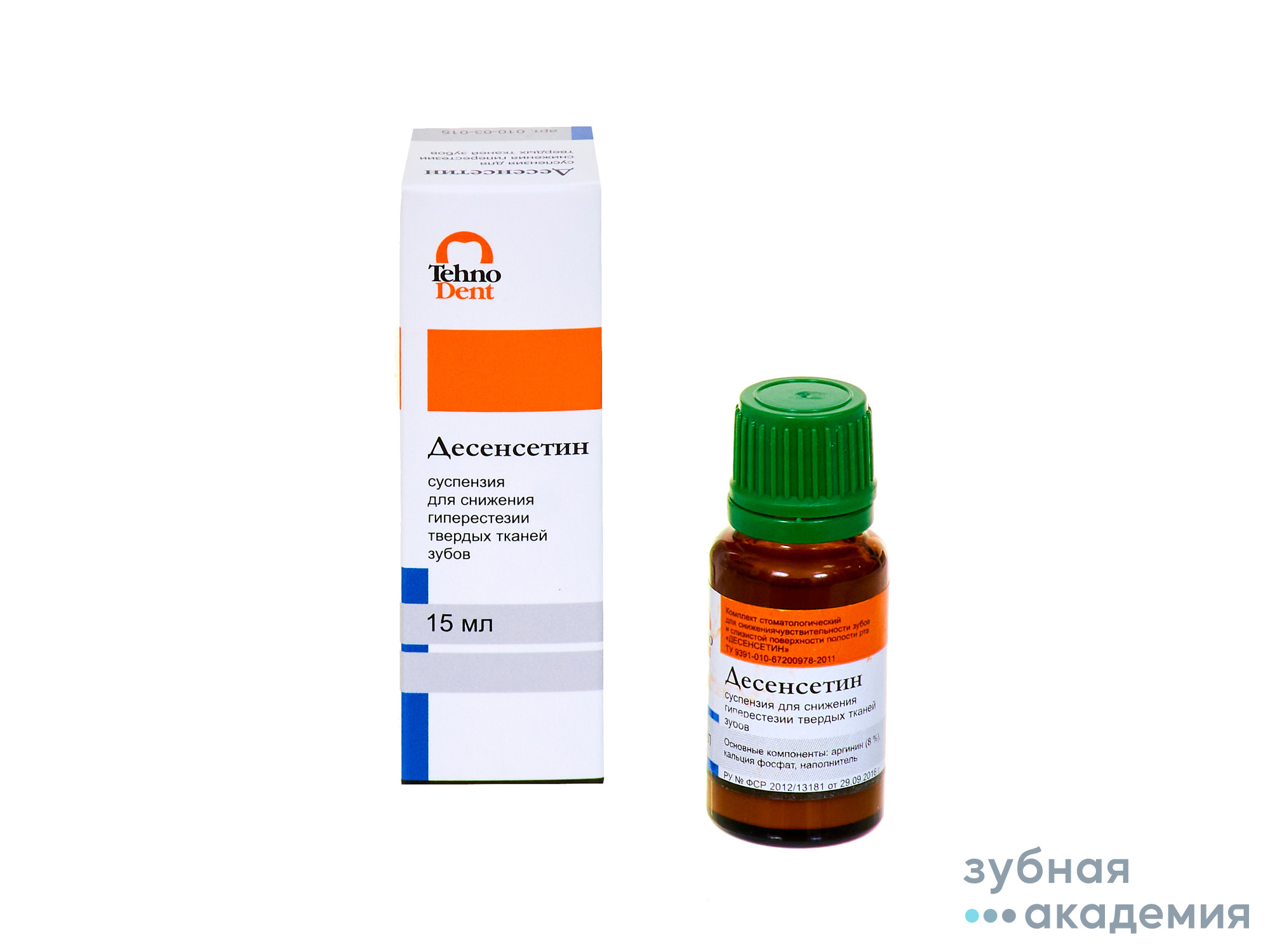 - Десенситайзер (для снижения гиперчувствительности дентина). Десенсетин суспензия на основе аргинина (8%). Показания к применению: • Снижения гиперестезии твердых тканей зубов. • Профилактика кариеса. • Преимущества: • Мгновенное и надежное снижение чувствительности твердых тканей. • Герметизация и восстановление микродефекта эмали. • Глубокое проникновение препарата в дентинные канальца. • Приятный освежающий аромат. • Универсальность в применении: аппликации, в каппах. Форма выпуска: флакон 15 мл.