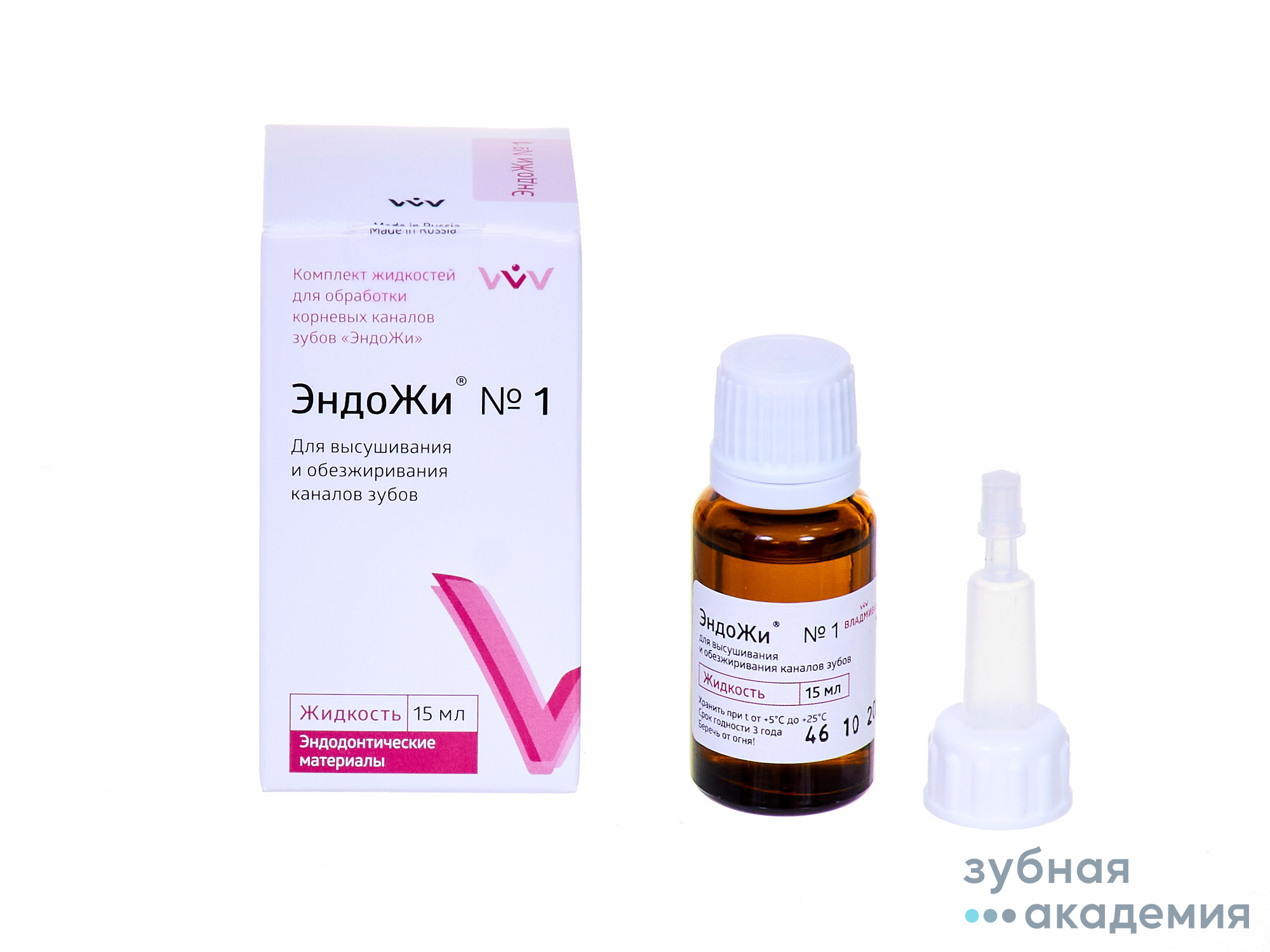 ЭНДОЖИ №1 - дегидратирующая жидкость для высушивания и обезжиривания каналов, не содержит диэтилового эфира и этанола, легко испаряется.