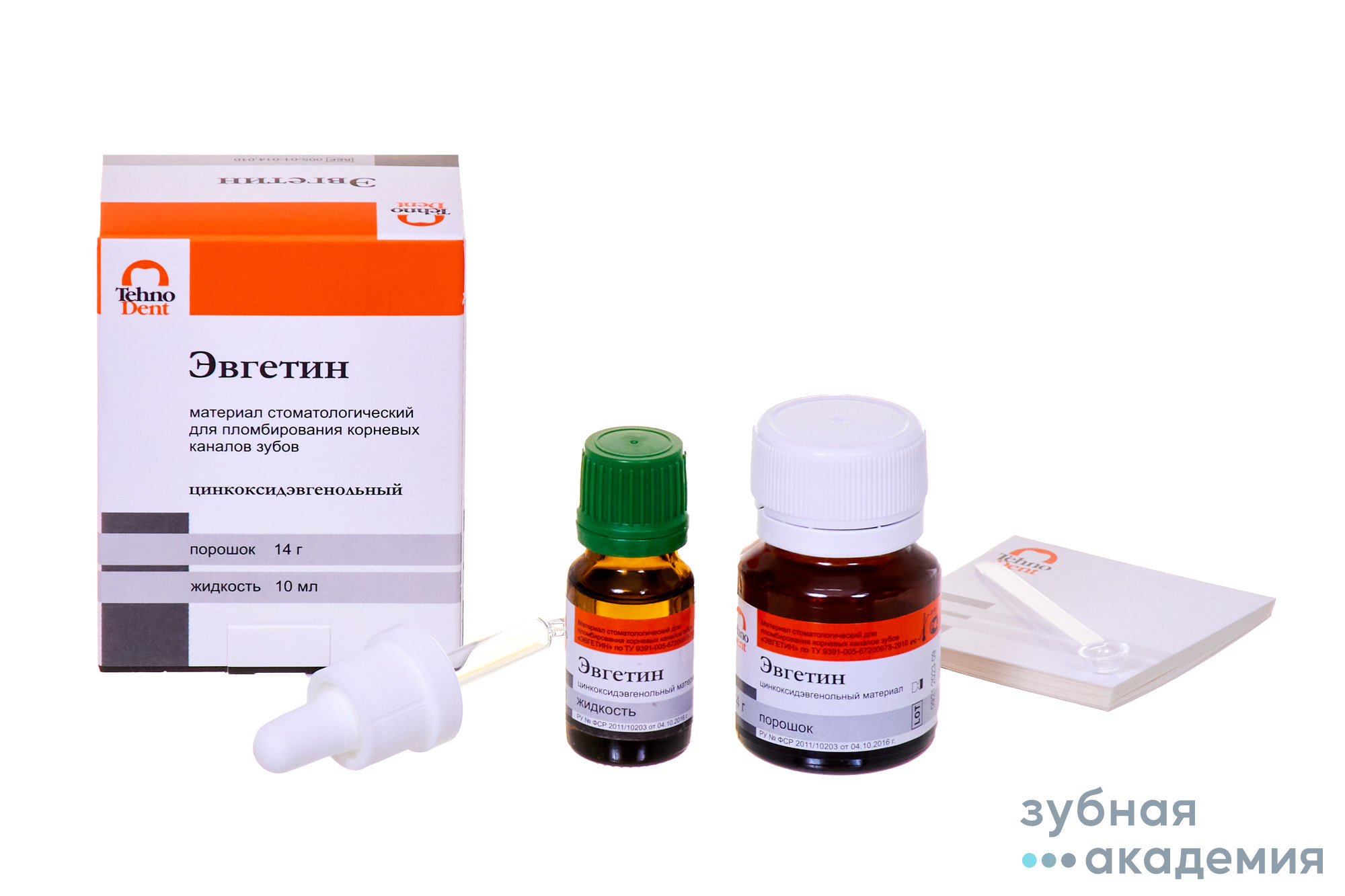 Материал стоматологический ЭВГЕТИН выпускается в комплекте порошок/жидкость и относится к цинкоксидэвгенольному классу.