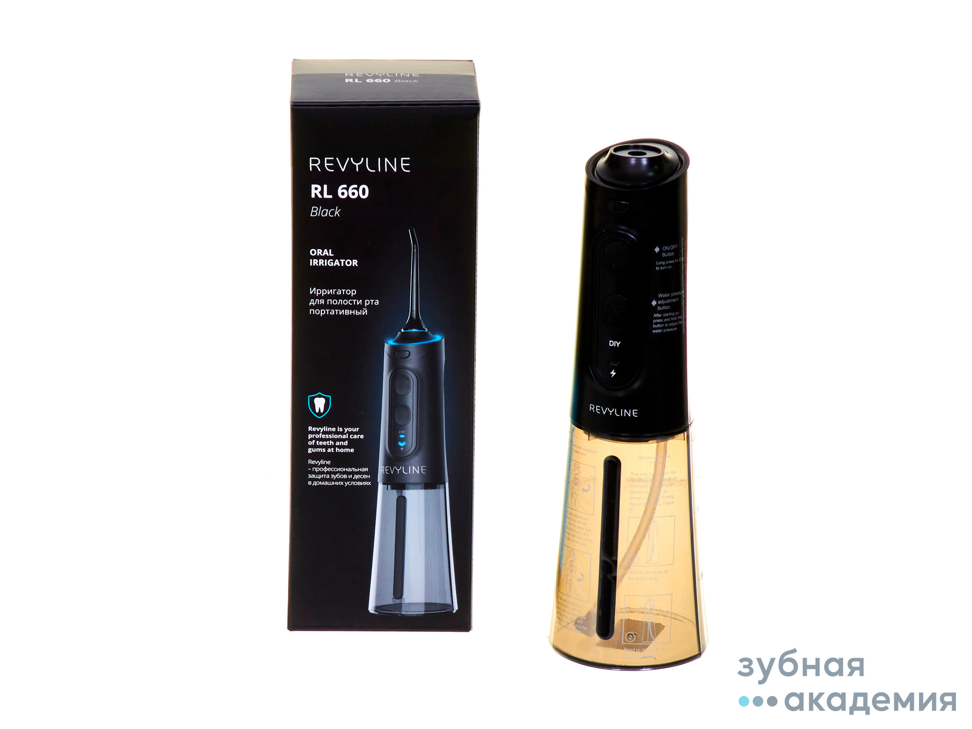 - Портативный ирригатор полости рта Revyline RL 660 – идеальный вариант для самых требовательных пользователей, которые ищут наиболее эффективный, функциональный и эргономичный прибор для ухода за зубами и деснами. Revyline RL 660 обладает рядом неоспоримых преимуществ. Конструкция прибора позволяет выбрать любой уровень давления в диапазоне от 210 до 820 кПа: его регулировка происходит в индивидуальном режиме. Удобное управление одной кнопкой, светодиодная подсветка (голубой цвет – во время работы прибора, красный – во время зарядки и зеленый – для обозначения полной зарядки), аккумулятор, который заряжается всего за 4 часа и, конечно, отменная профилактика стоматологических заболеваний. Благодаря регулярной процедуре ирригации бактериальный налет и микрочастицы пищи вымываются из самых труднодоступных мест, включая зубодесневую борозду, межзубные промежутки, места соприкосновения зубов с деталями ортодонтических конструкций.