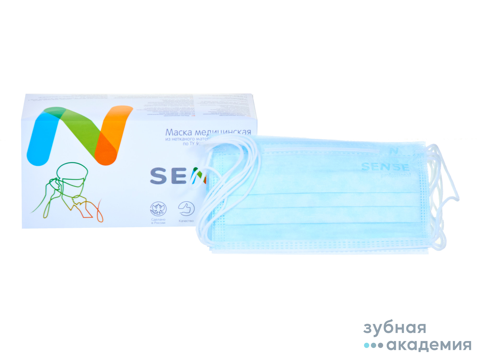 5. Маски трехслойные Sense белые упаковка 50 шт /ООО Маска/ Россия