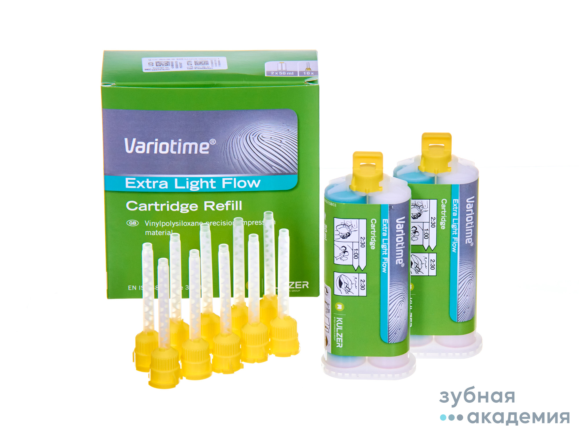 - Специально рекомендован для оттисков в два этапа, поскольку низкая вязкость Variotime Extra Light Flow очень хорошо подходит для получения тонкого слоя материала коррекции;