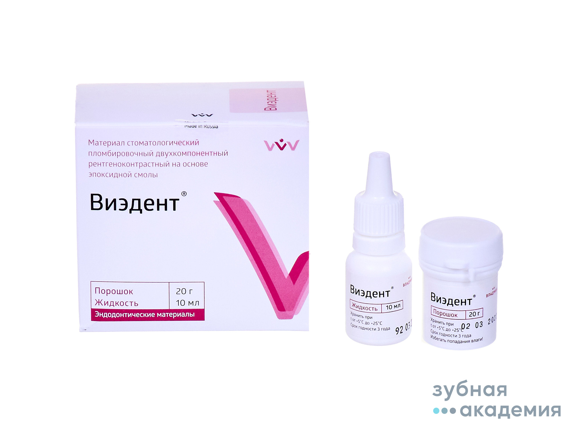 Материал «Виэдент» двухкомпонентный порошок-жидкость или паста-паста, рентгеноконтрастный материал на основе гидроокиси кальция эпоксидной смолы.