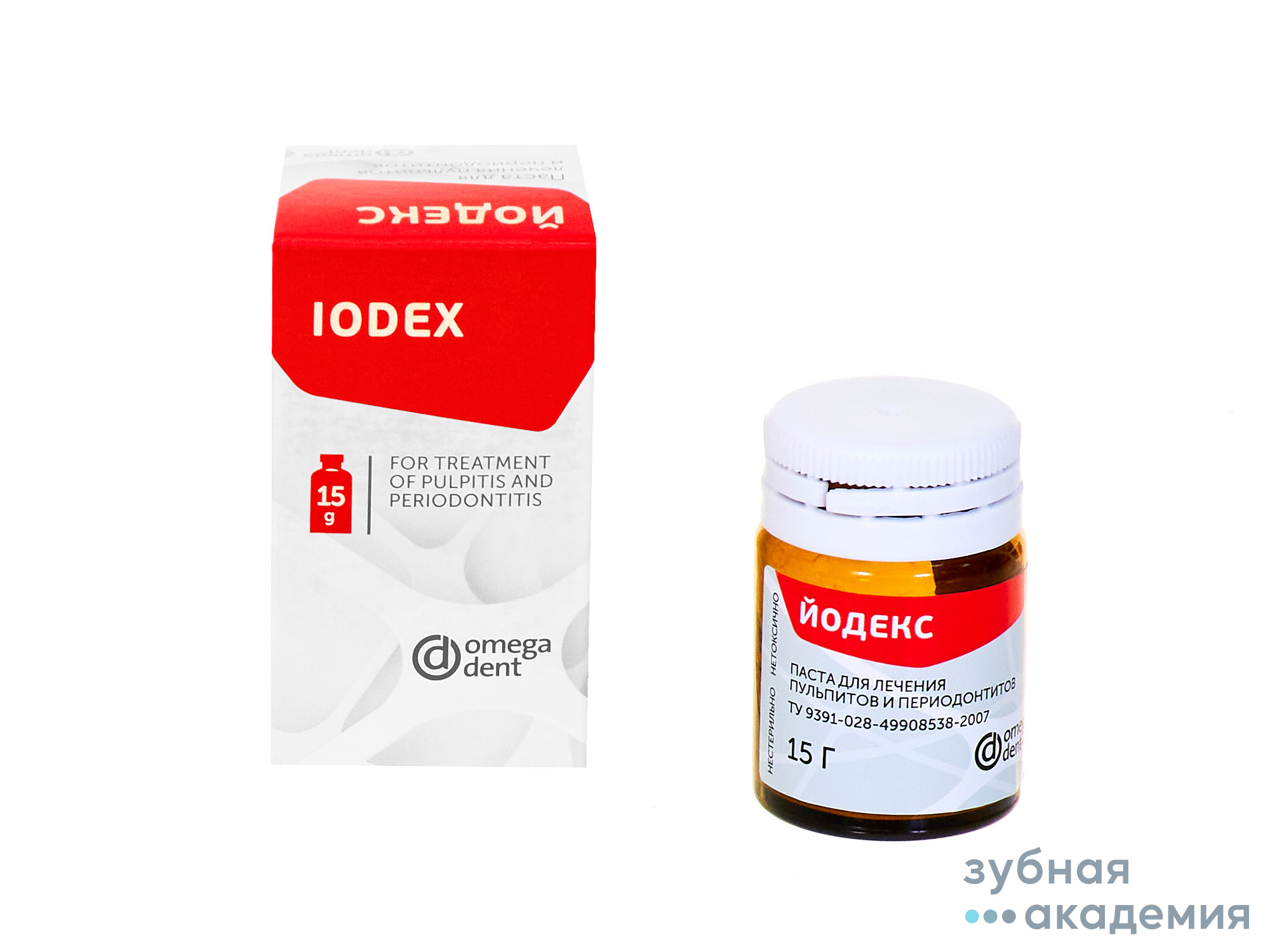 "ЙОДЕКС" используется в качестве лечебного и профилактического средства при хронических и острых периодонтитах, а также пульпитах (при повторных инфекциях после пломбирования), при лечении кариеса и инфицированных каналов. С помощью "ЙОДЕКС" становится возможным точное определение длины пломбируемого канала на рентгенограмме. Лечение может быть возобновлено в ходе следующего посещения благодаря тому, что паста не затвердевает. За счет этого риск потери доступа к каналу из-за его заполнения сводится к минимуму.