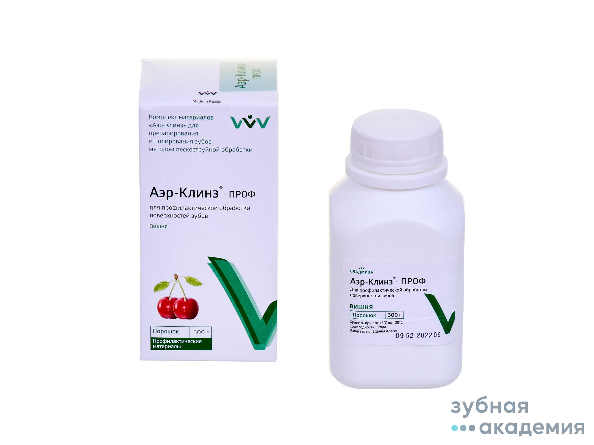 - СОСТАВ И ОСНОВНЫЕ СВОЙСТВА «Аэр-Клинз-ПРОФ» в качестве основного компонента содержит гидрокарбонат натрия с размером частиц, позволяющим провести очистку при щадящем воздействии на твердые ткани зуба. При случайном попадании очищающей струи на десну лидокаина гидрохлорид (0.5%), входящий в состав порошка, обеспечивает безболезненность мягких тканей. Порошок имеет приятный освежающий запах и вкус. НАЗНАЧЕНИЕ Аэр-Клинз-ПРОФ» (на основе соды) предназначен для: • удаления налета и мягких зубных отложений; • удаления пигментаций и отбеливания зубов; • очистки фиссур перед герметизацией. Вкус: Вишня.