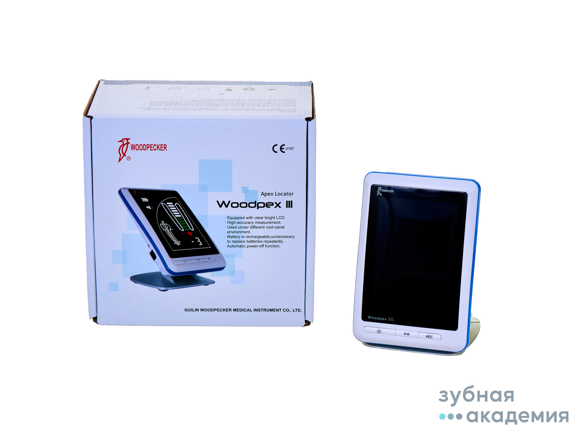 - Апекслокатор Woodpex III Woodpecker (Китай) Апекслокатор от фирмы Вудпекер - очередное достижение в сфере производства стоматологического оборудования. Основные характеристики: Имеет ЖК-дисплей,отличающийся четким изображением и превосходной яркостью. С точностью отображает траекторию и расположение инструмента в корневом канале Благодаря многочастотному измерению сопротивления и автокалибровки прибора выдает точные размеры корневых каналов Комплектующие могут быть стерилизованы при высокой температуре Складной экран При введении файла в корневой канал, на экране отображаются белые полоски. При локализации инструмента в апикальной трети канала появляются зеленые полоски. При выведении файла за пределы корня – красные полоски сопровождаются непрерывным звуковым сигналом. Технические характеристики: Батарея: 3.7V/750mAh Потребляемая мощность: 0,5 Вт Экран: 4,5 "LCD Вес: 336 г Размеры: 84мм х 88мм х 112мм