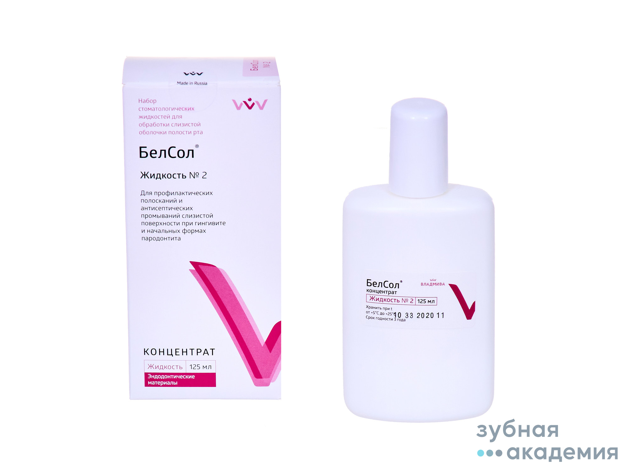 Жидкость №2 (концентрат) — для профилактических полосканий и антисептических промываний слизистой поверхности при гингивите и начальных формах пародонтита, а также для промывания инфицированных каналов зубов и медикаментозной обработки кариозных полостей перед процедурой пломбирования;