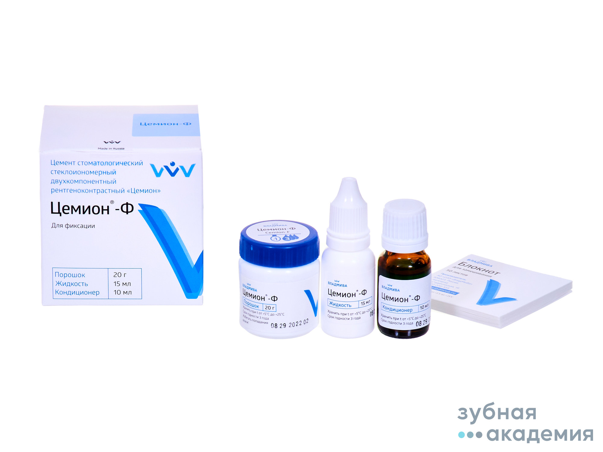 Набор для цементирования из измельченного алюмофторсиликатного стекла и водного раствора полиакриловой кислоты для замешивания стеклоиномерного цемента.