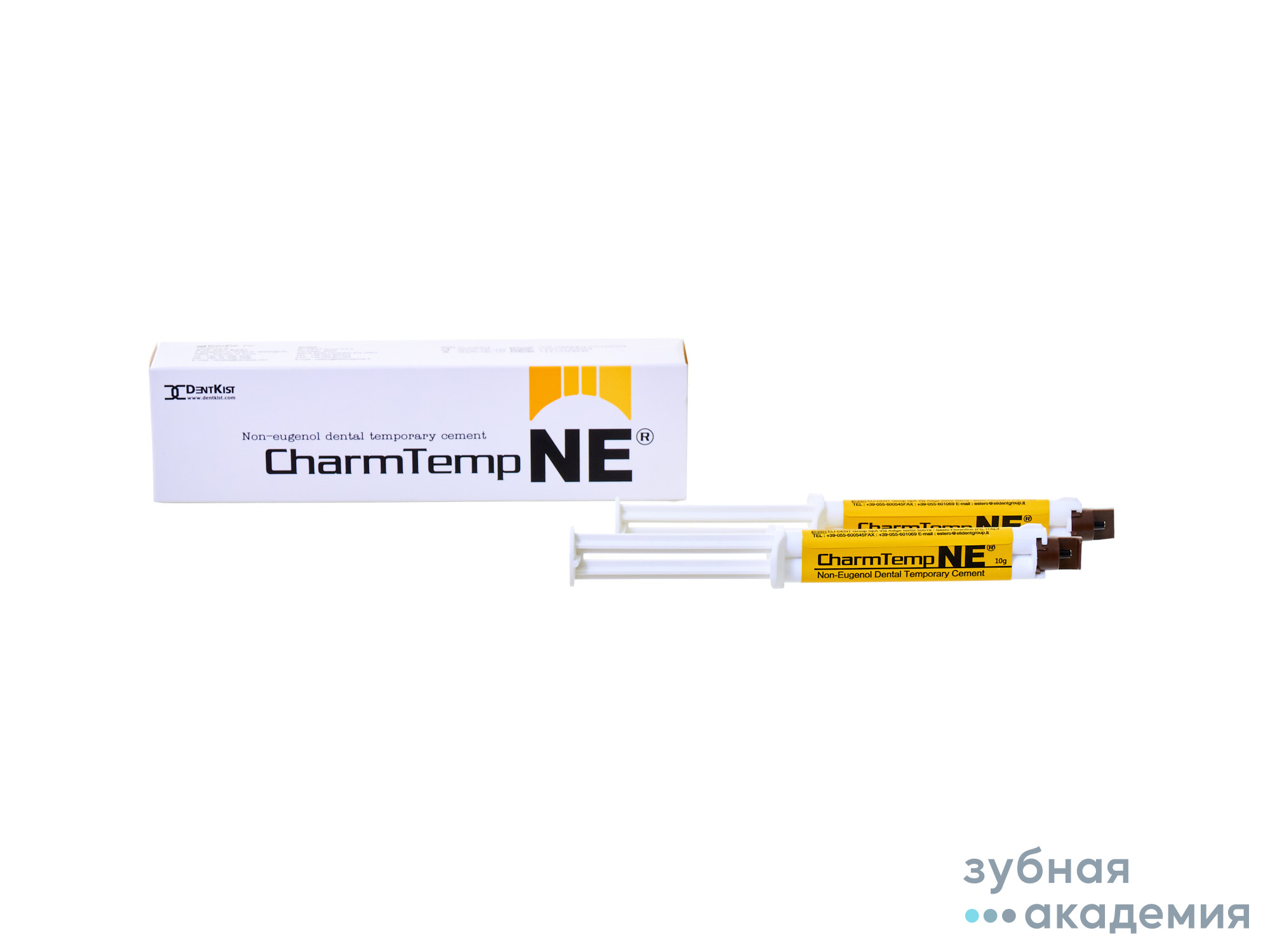 - CharmTemp®NE – материал временный цементный на основе оксида цинка без эвгенола, тип 1, класс 1 по ISO 3107. Описание: Компоненты материала CharmTemp®NE окрашены в контрастные цвета, что позволяет при смешивании определять момент достижения однородности смеси. Цвет основы – белый, цвет катализатора – светло-желтый. Применение: - для временного цементирования; - в качестве временных пломб, подкладок и прокладок в полостях зубов; - для защиты пульпы зуба при хирургической операции по восстановлению или ортодонтии; - для временной фиксации коронок, мостовидных протезов, накладок и вкладок. - Время твердения: минимальное – 4 мин, максимальное – 10 мин.