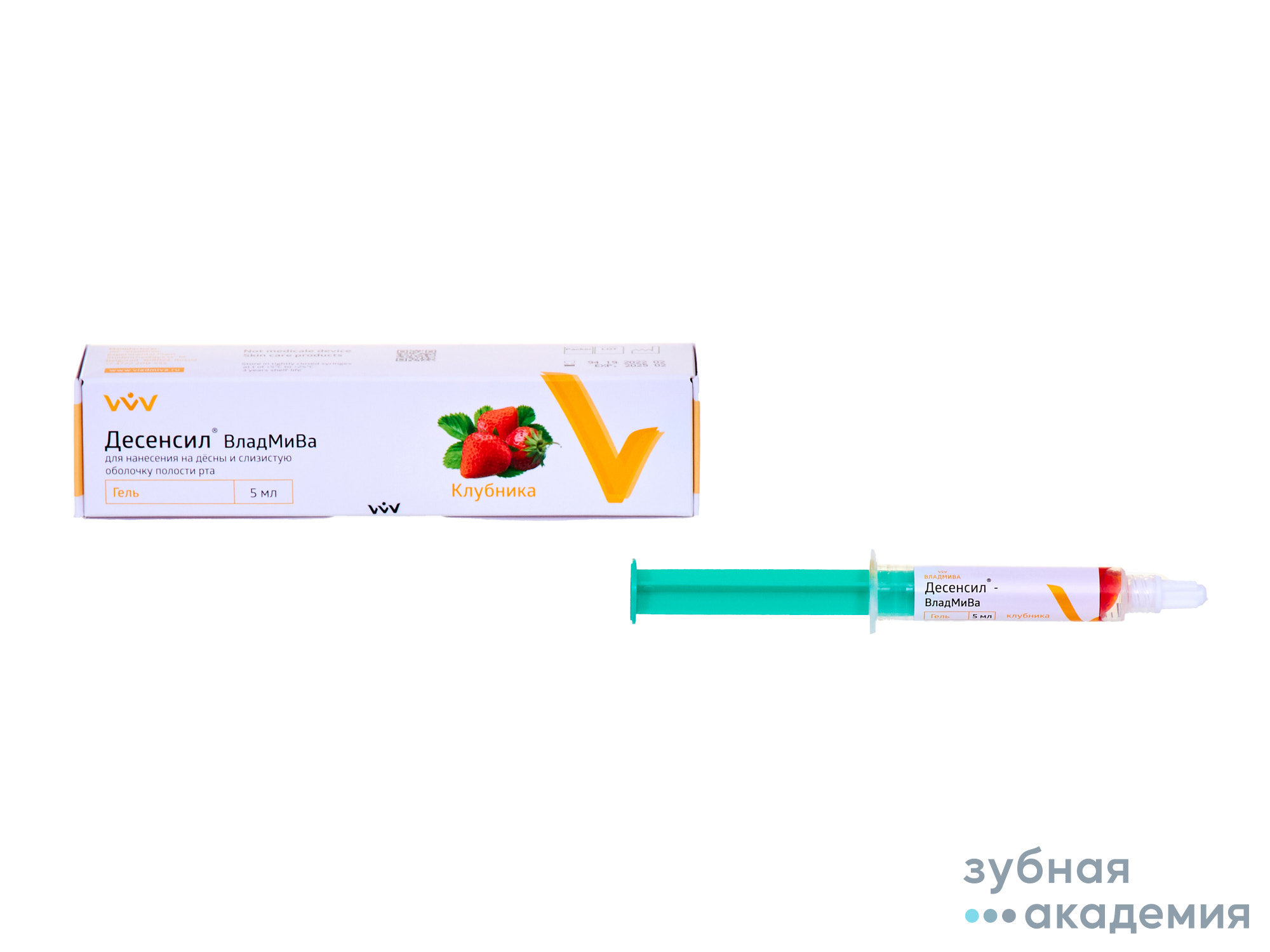 Гель «Десенсил ВладМиВа» выпускается с различными вкусовыми добавками; имеет удобную консистенцию для точечного нанесения; эффективно воздействует на рецепторы участка аппликации, ингибируя проникновение ионов натрия в нервные волокна.