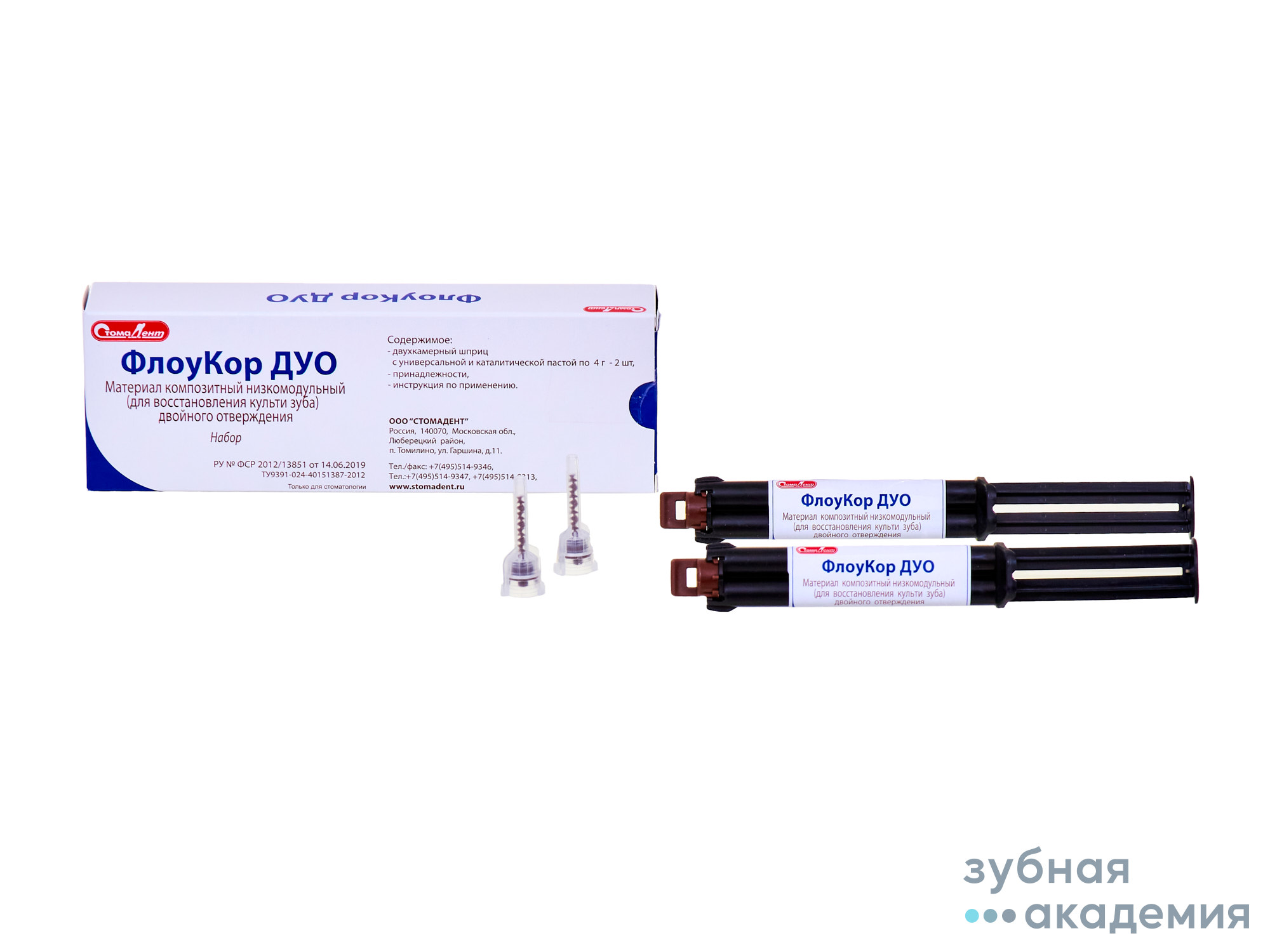 ФЛОУКОР ДУО НАБОР композитный текучий материал двойного отверждения, используется в терапевтической и ортопедической стоматологии для восстановления культи зуба. Применяется как для формирования культи зуба, так и для фиксации стекловолоконных и анкерных штифтов в корневом канале.