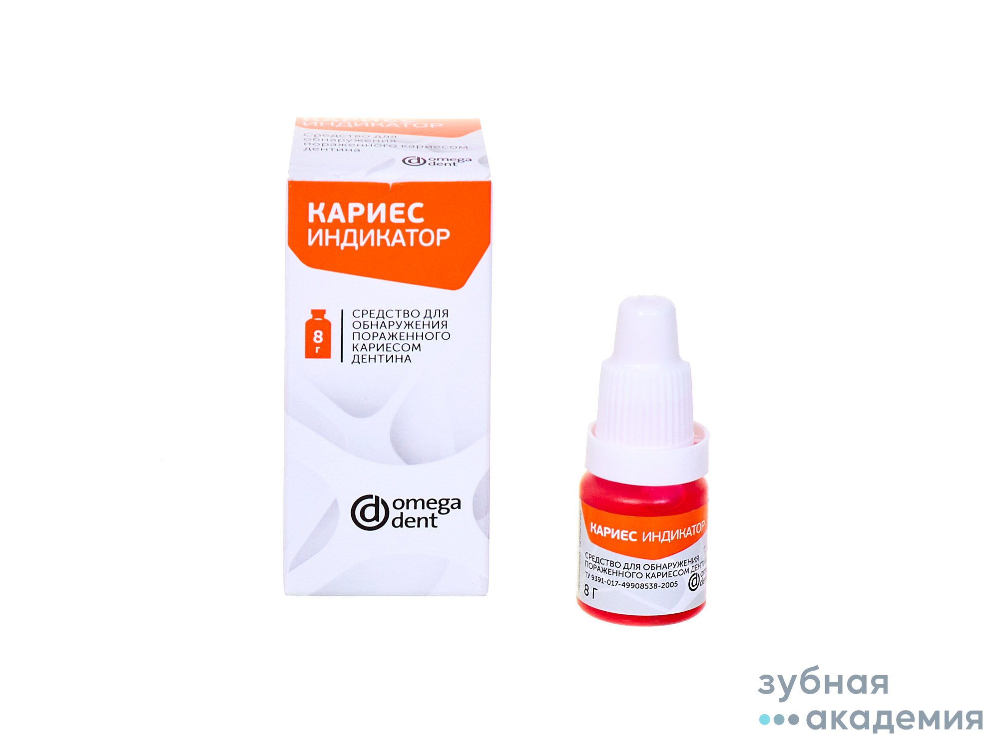 - Жидкость "Кариес индикатор" позволяет легко различить пораженный кариесом и деминерализованный слой дентина путем окрашивания в ярко- красный цвет наружных слоев кариозного дентина. 'Кариес индикатор' не окрашивает нормальный дентин и здоровую эмаль. Свойства и состав: Поверхностно-активный носитель, активатор, ПАВ, краситель, стабилизатор, наполнитель. 'Кариес индикатор' соединяется с денатурированным коллагеном, содержащимся в кариозном дентине, и окрашивает его за 10 секунд, что позволяет удалить только наружную окрашенную часть дентина, не затрагивая не- инфицированные области. Способ применения: Вскрыть пораженную кариесом область соответствующим бором. Очистить и тщательно промыть водой обрабатываемый участок. Осушить обрабатываемый участок потоком воздуха. Избыточная влага будет препятствовать эффективному процессу окрашивания. Нанести каплю 'Кариес индикатора' из флакона капельницы на прилагаемый блокнот.