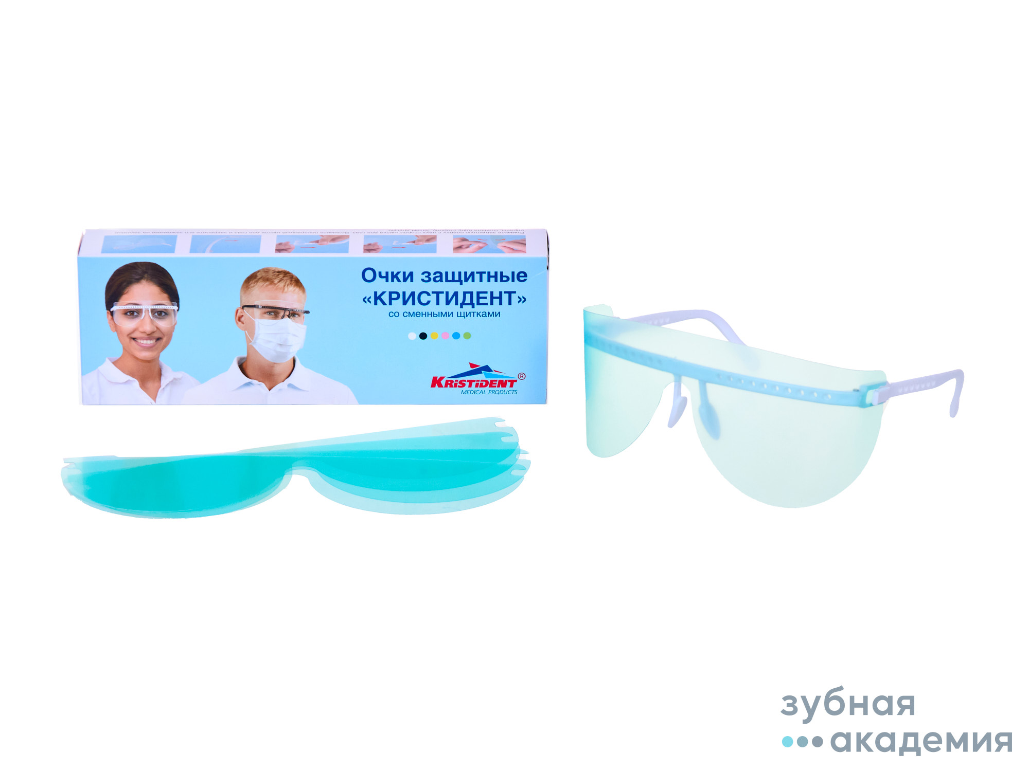 Очки защитные «КРИСТИДЕНТ» со сменными щитками, многоразовые, предназначены для защиты глаз от воздействия прямого или частично бокового попадания брызг жидкостей и пыли.
