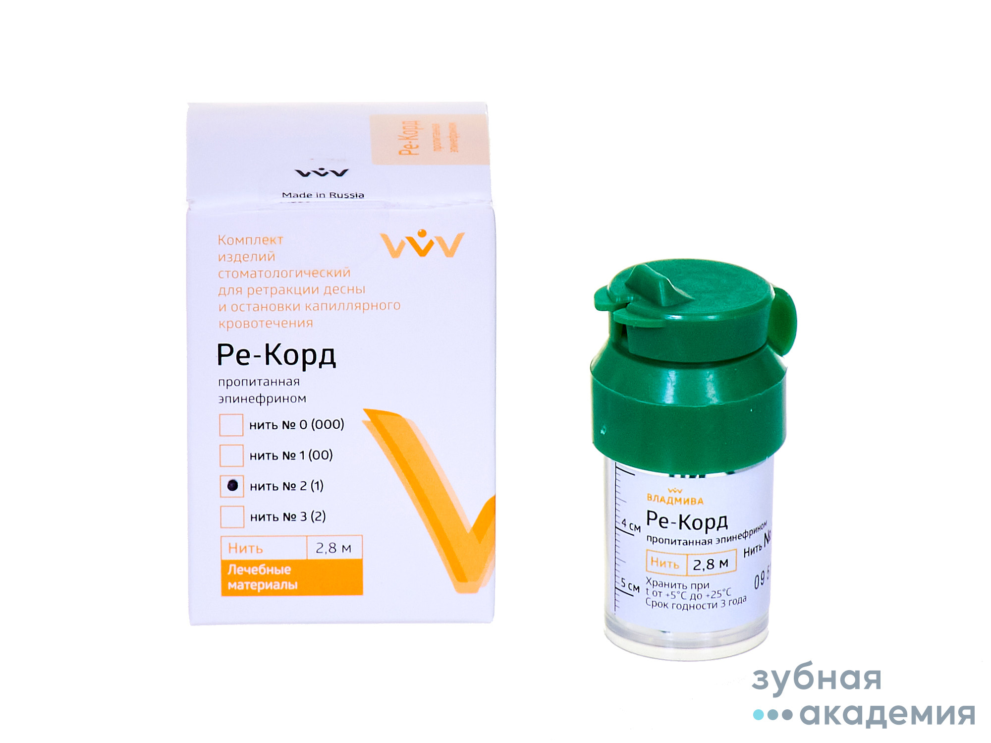 «Ре-корд» нить применяется для смещения десневой ткани при ретракции десны, а также для устранения десневого просачивания во время препарирования полостей, расположенных в пришеечной области зуба.