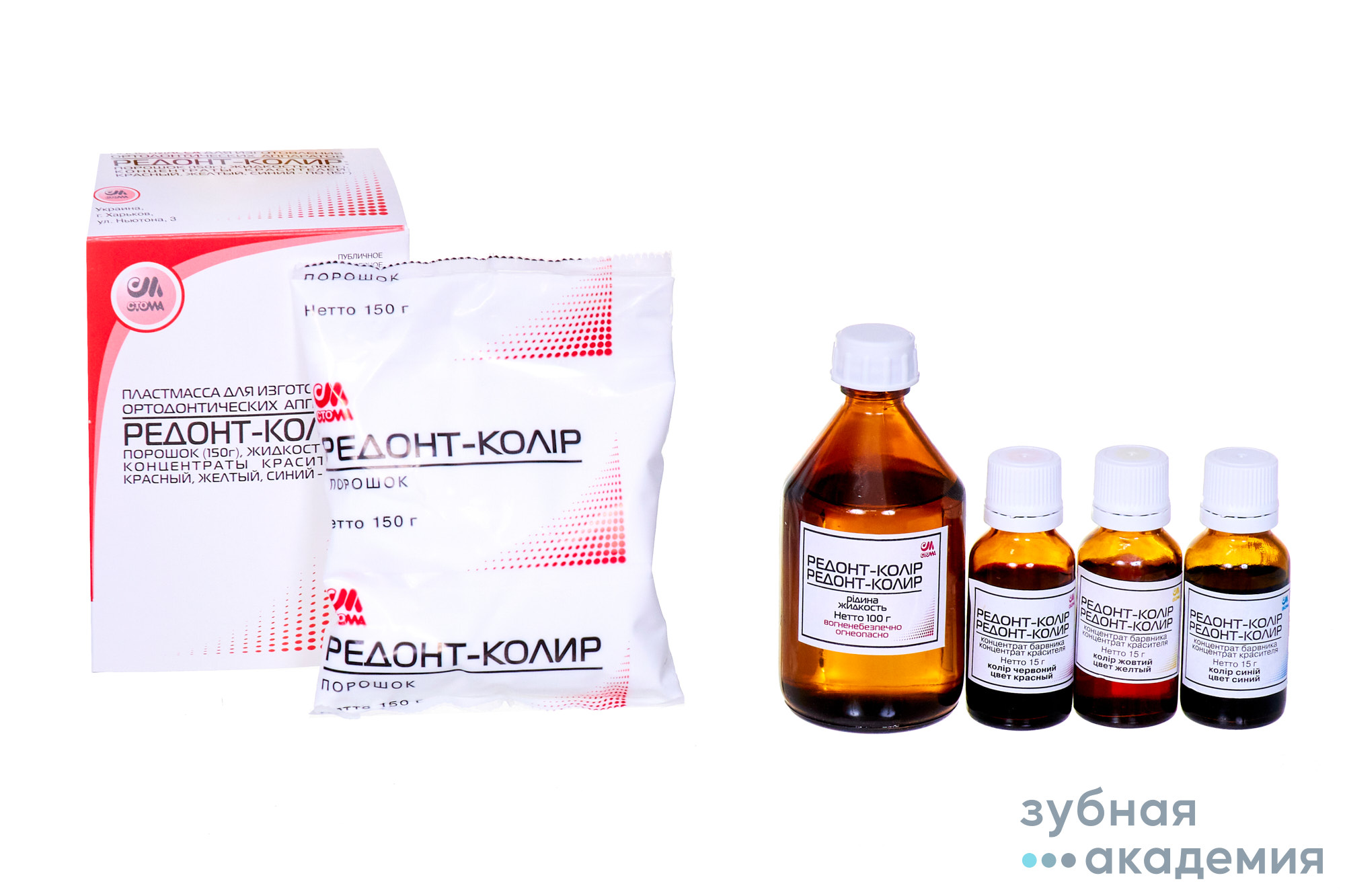 - Назначение: изготовление ортодонтических аппаратов (бесцветных или окрашенных с целью улучшения внешнего вида); изготовление ортопедических конструкций (бесцветных или окрашенных, в зависимости от индивидуального цвета десны); починка и перебазировка съемных зубных протезов, в том числе из пластмассы бесцветной для базисов протезов; Преимущества: универсальное применение; прозрачная; при помощи концентратов красителей (красного, желтого, синего) может окрашиваться в розовый, красный, желтый, синий, зеленый цвета; хорошо соединяется с базисными материалами («Фторакс», «Этакрил-02», «Пластмасса бесцветная»), а также с пластмассами «Протакрил-М» и «Редонт-03»; быстрая полимеризация и высокая технологичность.