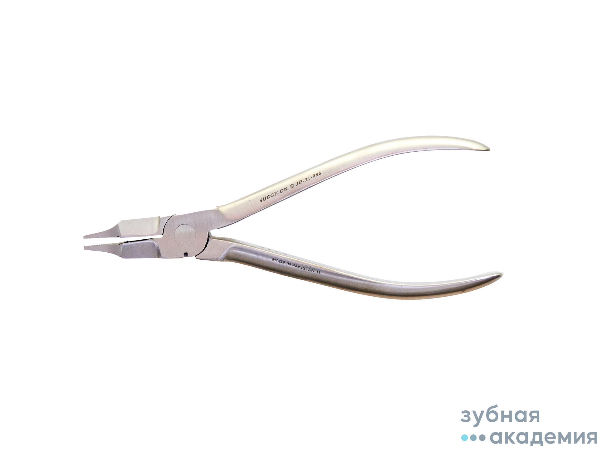 Предназначены для захватывания, перекусывания, сгибания и сплющивания различных металлических материалов при зубопротезных работах и шинировании челюстей. Половины щипцов прочно скреплены винтом, концы которого находятся заподлицо с боковыми поверхностями половин. На концы рабочей части губок нанесена поперечная нарезка. Изготовлены из нержавеющей.