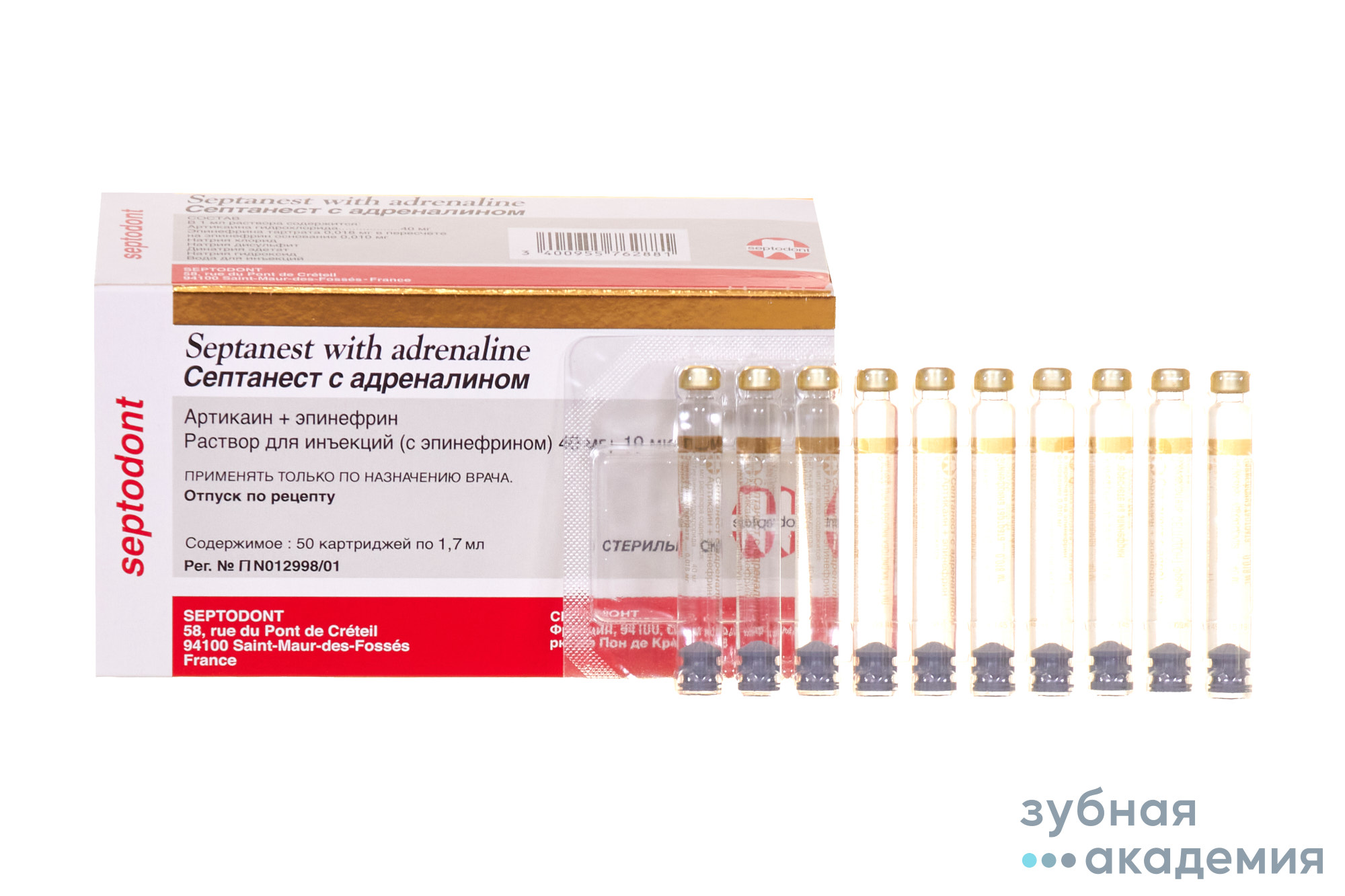 - Артикаина гидрохлорида 40,00 мг