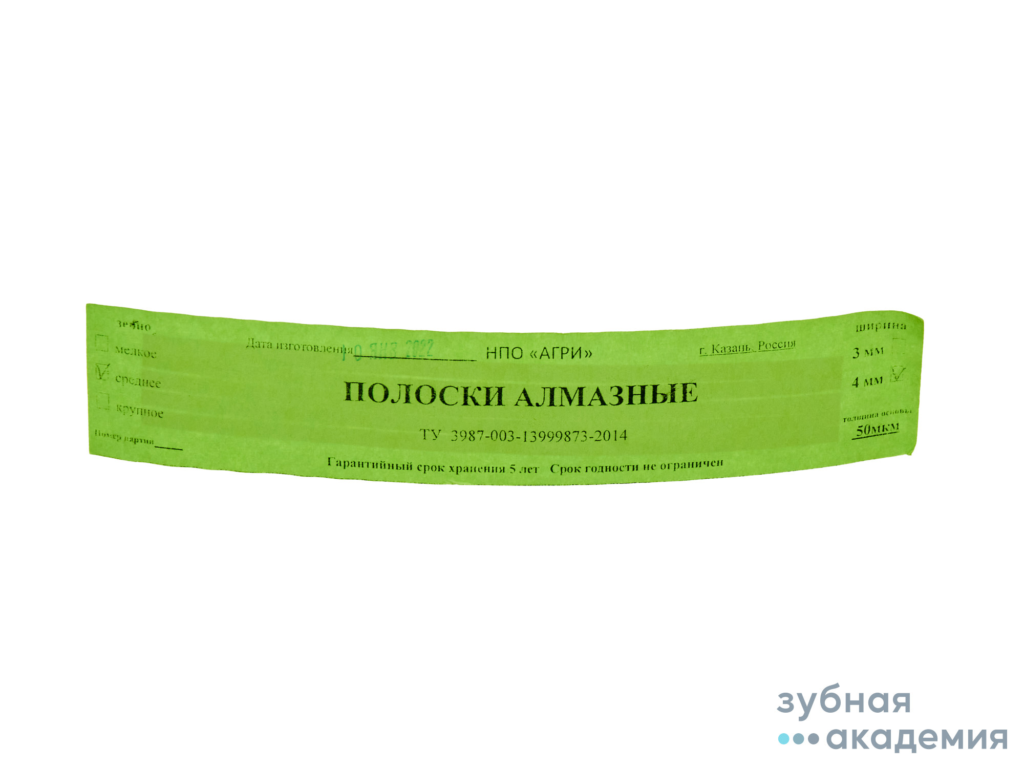 - Полоски алмазные (штрипсы), 4 вида зернистости, упак.5 шт. олоски стоматологические алмазные предназначены для обработки интердентальной поверхности живого зуба, керамического или пластмассового протеза в клинических условиях. Ширина 4 мм, длина 150 мм. В упаковке 5 штук.