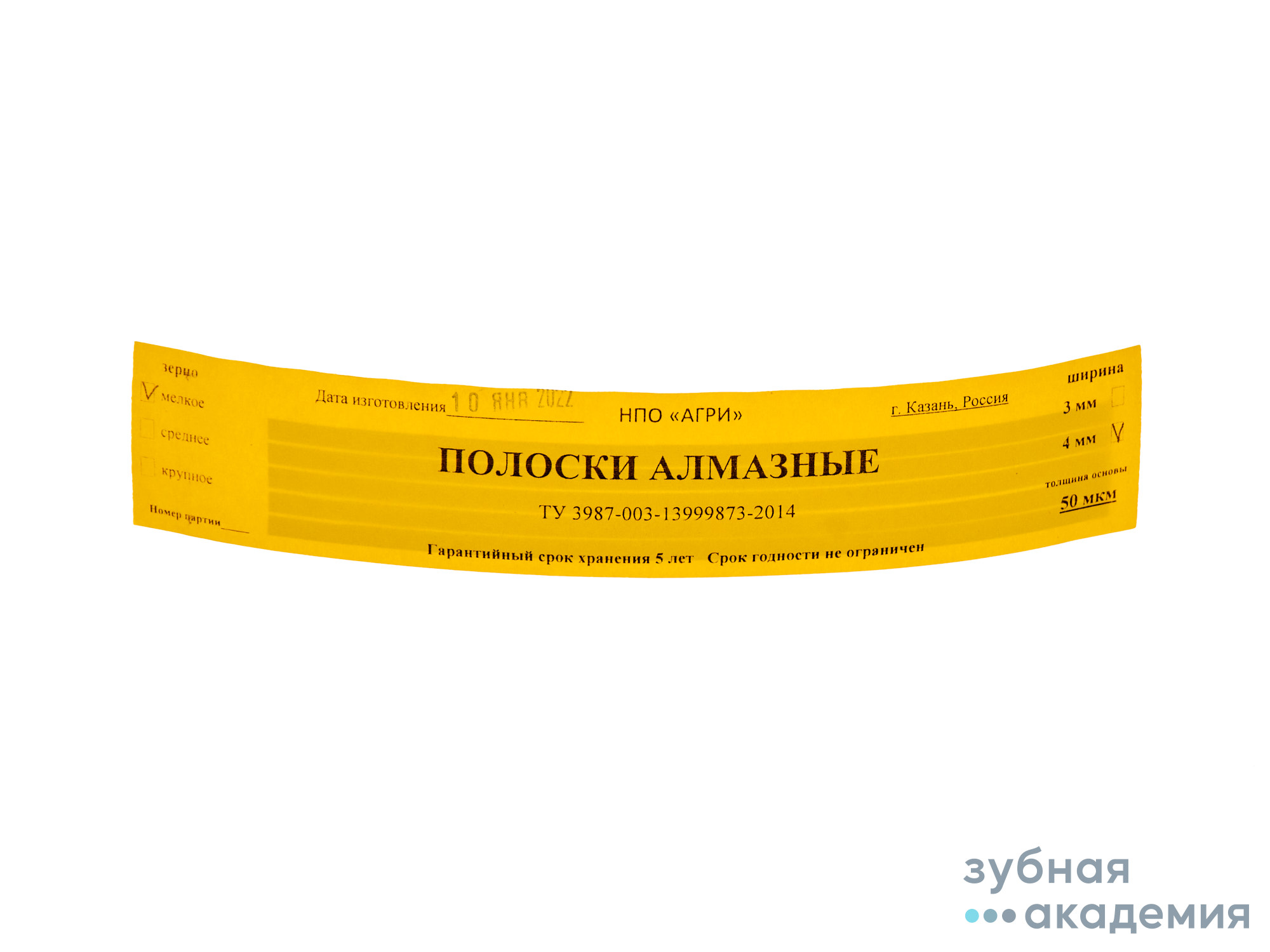 - Полоски алмазные (штрипсы), 4 вида зернистости, упак.5 шт. олоски стоматологические алмазные предназначены для обработки интердентальной поверхности живого зуба, керамического или пластмассового протеза в клинических условиях. Ширина 4 мм, длина 150 мм. В упаковке 5 штук.