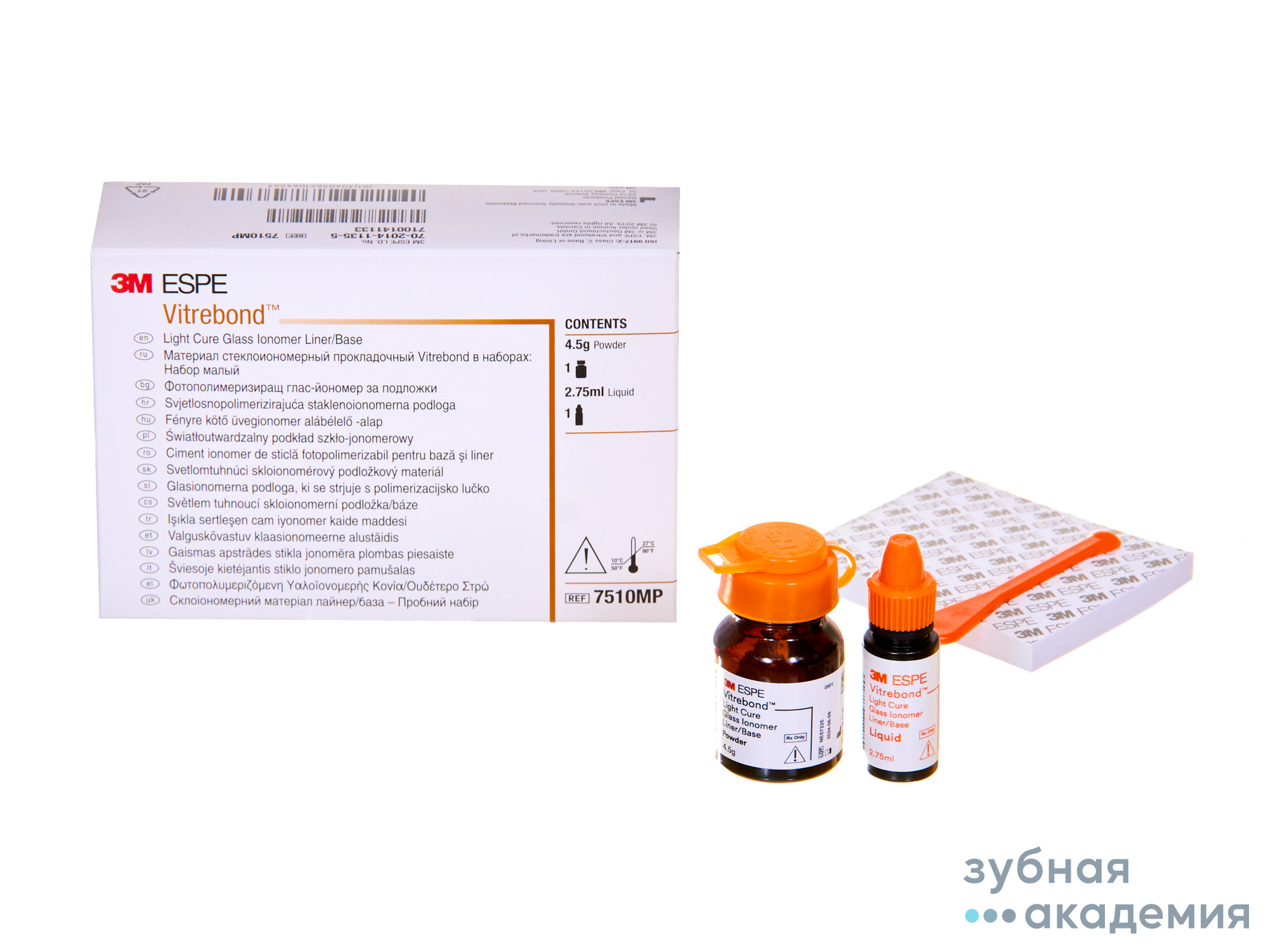 - Стеклоиономерный прокладочный материал светового отверждения Малый набор: 1 флакон с порошком (4,5 г), 1 флакон с жидкостью (2,75 мл), 1 блокнот для замешивания (7,5х8 см) 1 ложечка для дозирования Назначение: • Наложение лайнерной прокладки при среднем кариесе у пациентов с проблемной полостью рта • Наложение лайнерной прокладки под композитную пломбу в кариозную полость с высоким С-фактором • Наложение изолирующей прокладки при глубоком кариесе для предупреждения разрушения лечебного прокладочного материала компонентами адгезивной системы • Наложение лайнерной прокладки под композитную пломбу, если врач планирует закончить лечение зуба в одно посещение Преимущества: • Двойной механизм полимеризации: - фотополимеризация - стеклоиономерная реакция • Активное пролонгированное выделение фтора • Отличное краевое прилегание • Прочная химическая связь с дентином (в т.ч.патологически изменённым) • Высокая биосовместимость • Рентгеноконтрастность.